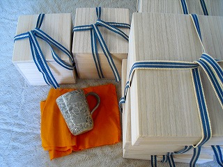 作品や場所などコンセプトによって違いますが、今回は桐箱に納めての出品です。