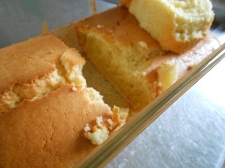 ガラスのパウンドケーキ型にいれてオーブン180℃、25分で焼く。