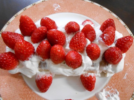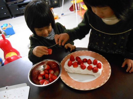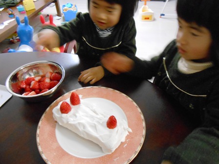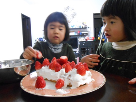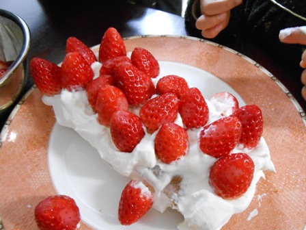 待ちに待ったデコレーションケーキ。一応クリームとイチゴが乗るのは誕生日とクリスマスだけと言っておきましたw