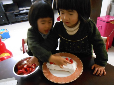 その前にイチゴが食べたい、焼いたケーキが食べたいとわーわー言っていましたが、今夜のクリスマスケーキがなくなるよ?と脅してwおくと我慢していましたw