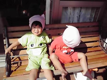 一卵性といえどもお腹の中にいたときに窮屈だったせいか頭の形や顔の輪郭が違うので、まあまあ二人の区別が付きます。それでもよそ様に言わせると「そっくり~!どっちがどっち??」らしいですw