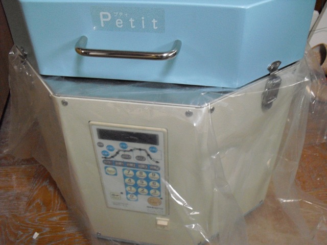 なかなかコンパクトです。湯沸しポットより小さ目かな。五合精米できます。